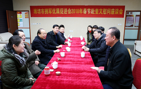 潍坊市拥军优属促进会自2017年3月成立以来,始终坚持开展拥军优属工作,一直关注部队建设、关爱退役军人家庭,致力于为部队官兵和优抚对象排忧解难。2017年4月组织会员参观学习全国优秀退役军人冯涛退伍不忘军人本色、积极投身社会主义新农村建设的事迹;7月组织在潍柴控股集团召开了“军民融合发展座谈会”;”八一”前后,结合庆祝建军90周年的有利契机,积极开展文化拥军系列活动,先后携手潍坊市艺术剧院和潍坊职工合唱团的艺术家们,到驻军勤务支援旅和炮兵旅,奉献了两场精彩的军民联欢晚会;举办了“红旗飘飘——潍坊市庆祝建军九十周年书画展”、“红色经典奇石展”、“阳光公益杯庆八一书画展”和“送书画”进军营等活动。这些活动的开展,增强了参与者的国防意识和拥军优属情感,营造出浓厚的拥军优属氛围,在社会上引起极大反响。 这次发起的“送温暖、进百家”春节慰问活动倡议,受到热心拥军优属事业的各界朋友积极响应,短短3天内共收到50余家单位及个人自发捐款现金2.36万元,物品价值3.5万余元。据悉,促进会还将到滨海开发区、青州市走访慰问。(程凡华、刘海宁)