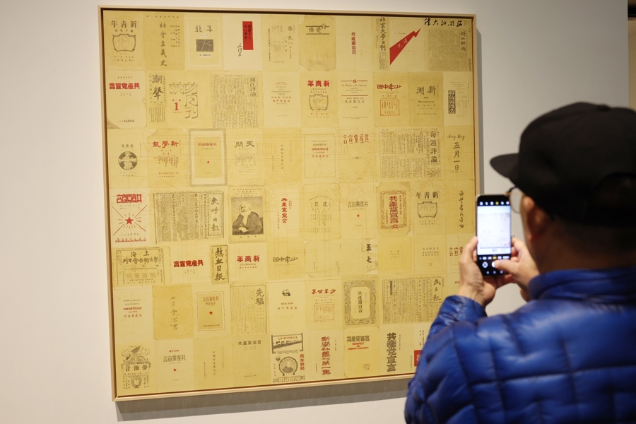 展出作品题材风格多元,既有围绕“抗战胜利80周年”“长征胜利90周年”“建军100周年”等重大主题、自觉深挖上海红色资源文化富矿的创作,也有聚焦上海“人民城市”建设以及长三角区域一体化发展进程中重要事件、重要人物和重要成就,刻画最美人物、讴歌奋斗历程、弘扬创新精神的佳作,立体呈现了上海作为光荣之城、开放之城、创新之城和梦想之城的时代风貌。 第十三届上海美术大展展出的艺术作品之一。赖鑫琳 摄