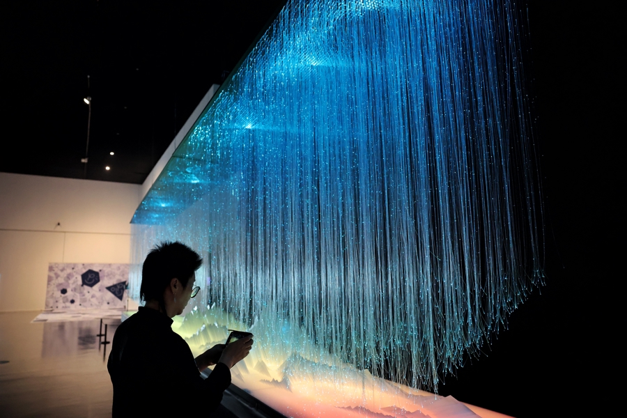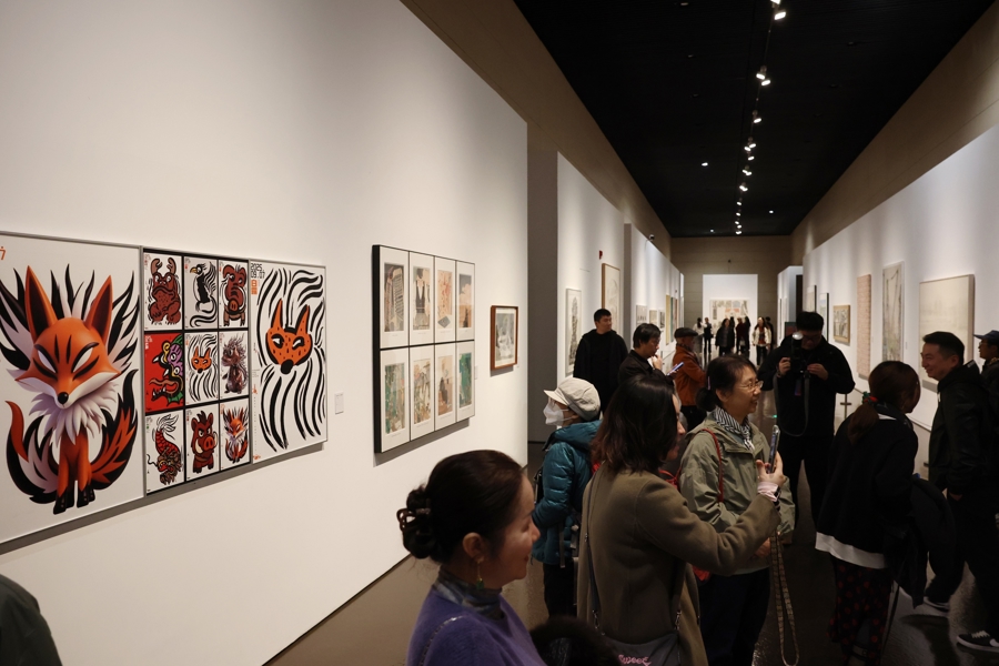 上海美术大展创办于2001年,每两年举办一届。展览自2009年第五届起,在原有基础上创设“白玉兰美术奖”,推动一大批反映时代精神和上海特色的精品佳作不断涌现,代表上海在历届全国美术作品展览中斩获佳绩。 荣获本届“白玉兰美术奖”和“沈柔坚艺术基金奖”的20位作者,年龄最小的23岁,年龄最长的72岁,45周岁以下16人,占比80%。其中,00后1人,90后6人,85后6人,80后3人,70后2人,50后2人。85后、90后已经成长为创作的中坚力量。 展出作品题材风格多元 本届大展共收到征集作品2729件,经过初评、复评,共遴选入展作品534件(含获奖作品),包括中国画84件,油画78件,版画41件,水彩粉画49件,雕塑46件,漆画25件、综合材料绘画57件,陶瓷艺术21件,漫画、动漫25件,插画、连环画、年画41件,海报设计23件,实验艺术、数字艺术30件,建筑艺术、公共艺术14件,是上海市美术家协会新一届专业艺委会的首度集结亮相,合力呈现了上海美术创作百花齐放的多元格局。 第十三届上海美术大展展出作品之一。赖鑫琳 摄
