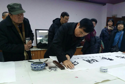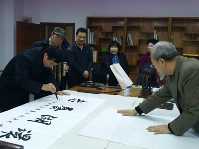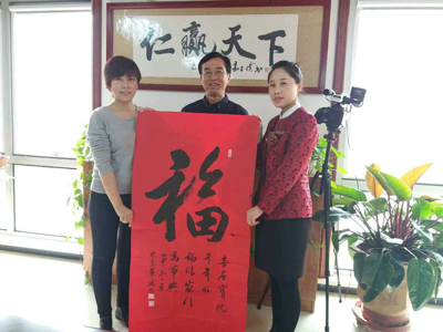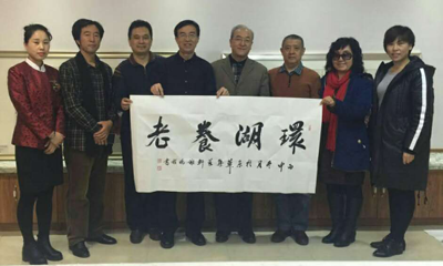 2016年12月17日上午全国学雷锋联盟艺术院线、北京北国风书画院与中国书画导航网联合将文化送到北京环湖养老康复中心。位于北京市通州区张家湾镇103国道梁各庄旁500米,是一个颐养家结合的高端养老中心,因地处环湖小镇而得名。 这次送文化活动,由全国学雷锋联盟主席张贵先生带队。参与人员有全国学雷锋联盟副秘书长、北京北国风书画院院长陈俊生先生;北京市美术家协会会员、中央国家机关书法家协会会员、辽宁省书法家协会会员、中国人民对外友好协会艺术创作院研究员、中国收藏家协会会员、中国书画导航网总编辑姜乃军先生;全国公安书法家协会会员、北京市书法家协会会员、首都公安文联书画专业委员会常务理事、中国书画研究院研究员、中国书画导航网书法部艺术顾问谢鹏程先生,全国学雷锋网副总编、北京北国风书画院副院长、中国书画导航网高级编审钟咏梅女士;青海省格拉丹东药业北京总经理马卫政先生。 一行六人首先为北京环湖养老康复中心的老人们献上书法家谢鹏程先生书写的八平尺大的“福”字,预祝老人们福寿绵长,福如东海,寿比南山。 首先听取了养老康复中心康复经理巴晓丽女士和宣传经理金娜关于康复养老中心的规模、标准、发展愿景的介绍,并在两位经理的带领下参观了康复养老中心的颐养家医院、康复中心、康复及颐养病房、各种文娱室、餐厅、空中花园、无土栽培采摘园。 张主席现场挥毫写大幅“德圣”二字,并配以“以德为本,,雷锋堪称典范”,引导人们崇德向善,弘扬正气。谢鹏程先生用行书书大字“环湖养老”“福寿康宁”,并写多幅 描写春天的古诗词。预祝老人来到这里如沐春风,福寿绵长。姜乃军先生与钟咏梅女士合作《荷逢盛世》,春日荷塘,万物葱茏,生机盎然,欣欣向荣。 张主席表示:今后全国学雷锋联盟要针对养老事业开展 “益老益小”学雷锋专项活动,联盟艺术院线也会利用专项资金做一些专项扶持工作。陈俊生先生表示要为康复养老中心捐赠一批当代名家字画和书画活动室的关于美术、美学方面的书籍。姜乃军先生表示:要经常带领艺术家们来这里为老人们创作作品。把实实在在的温暖送给老人们,老吾老及人之老。马卫政先生当场表态要为:康复养老中心捐赠一批药品和医药器械。 领导一致表示:要把北京环湖养老中心作为全国学雷锋联盟的联系单位,艺术家创作基地,为老人争取最大的帮助,让艺术贴近生活,为生活中国的养老事业助力。