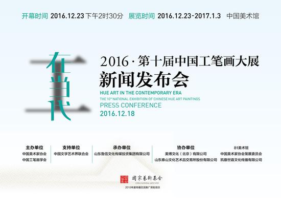 新闻发布会海报 12月18日,“工•在当代——2016•第十届中国工笔画作品展”(以下简称“工•在当代”)新闻发布会在北京画院美术馆学术报告厅举行,中国工笔画学会副会长、新闻发言人、中国艺术研究院美术研究所所长牛克诚,中央美术学院中国画学院人物画系系主任、博士生导师、本次展...[详细内容]