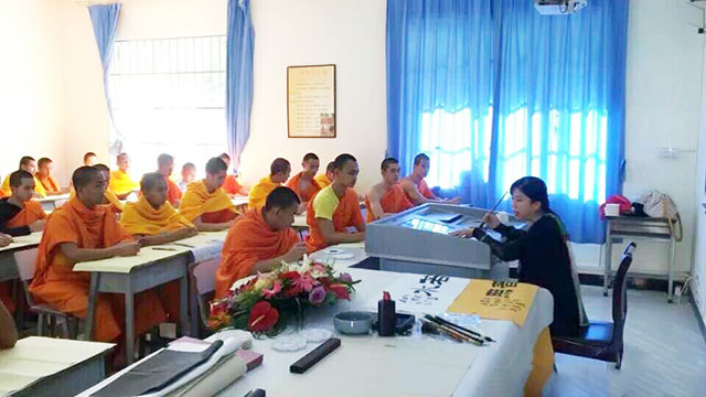 邓凌鹰在西双版纳佛学院为教职人员与学僧讲授中国书法...
