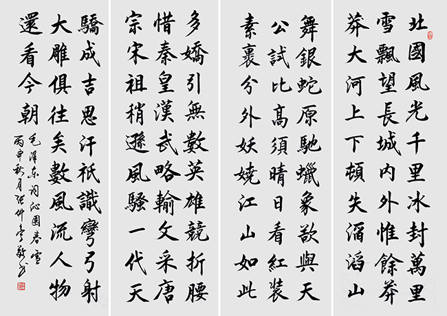 为经典插上艺术的翅膀 ——中国毛泽东诗词研究会会长陈晋评张仲亭书毛泽东诗词 张仲亭先生的书法创作,致力于书写国学经典,入古出新地传播中华优秀传统文化。他用楷书书写了《论语》、《金刚经》、《道德经》,出版了不少书法专集,在书法艺术界受到广泛推崇。 如今,他摊开《毛泽东诗词集》,...[详细内容]