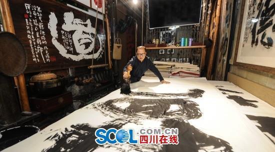 张贵生正在进行巨笔书法创作(田为 摄) 四川在线消息(记者 余如波)8月27日中午时分,成都锦里游人如织。闹中取静的“锦里书苑”中,法国画家马克正和这里的主人、巨笔书法家张贵生兴奋地攀谈。2015年,马克从朋友那里偶然了解到张贵生的巨笔书法,好奇之下不远万里从法国专程前来拜访,此番则是两人...[详细内容]