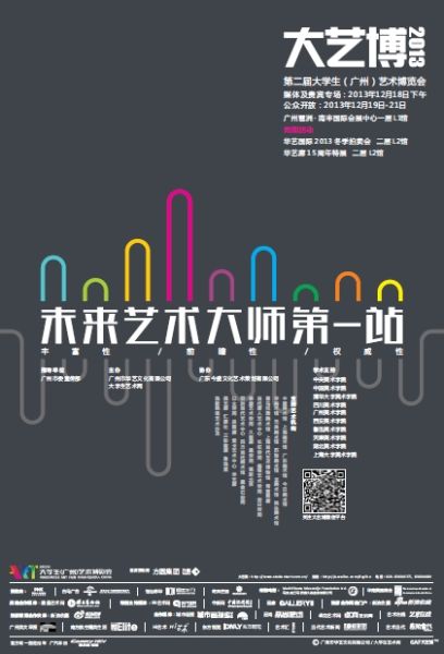 展览海报 新浪收藏讯大学生(广州)艺术博览会(以下简称大艺博)在2012年成功举办首届后,第二届将于2013年12月18日下午在广州琶洲南丰国际会展中心开幕,届时将展出799名青年艺术家的1963件作品。作为国内目前最大规模的中国最年轻艺术创作群体的大型艺术博览会,大艺博集中呈现了全国美术专业毕...[详细内容]