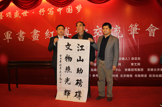 中国书画导航网10月26日消息【记者 赵永光】,由中国将军书画艺术院、《安徽人》杂志社主办,红博馆、人民美术网、青艺网共同承办的“将军书画红博馆交流笔会”在红博馆举行。“翰墨颂盛世·抒写中国梦”,中国将军书画艺术院的几十位将军艺术家现场挥笔泼墨创作了优秀作品,抒写出自己的中国梦。...[详细内容]