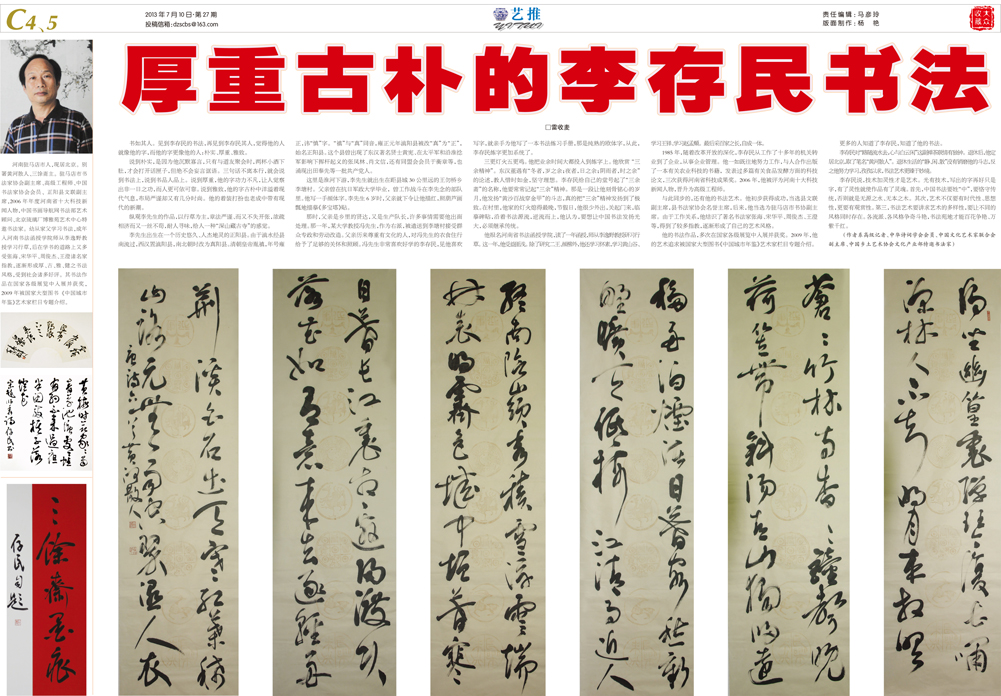 中国书画导航网特邀书法家李存民:大众收藏报7月10日...