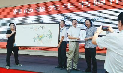 日前,国内著名书画家韩必省(右二)个人书画展在龙城展出,吸引了省城万余名书画爱好者的目光。昨日,韩必省将今年最新创作的一幅工笔画《天运呈蝶图》捐赠给太原美术馆,让其独有的绘画技艺和对传统文化的继承、发扬的精神在山西这片土地上绵延生息。 该图大小为69cm×119cm,是其工笔兼写意绘画的...[详细内容]