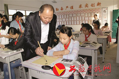 书法爱好者进校园义务培训乡村学生