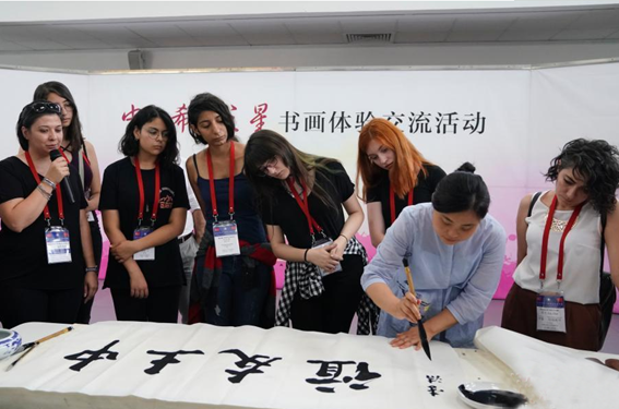 第三届“中土希望之星”代表团的10位土耳其高中生及其老师在中国美术馆公共教育空间体验中国书发习字。 据了解,这批土耳其学生是丝绸之路国际美术馆联盟成立后首批到访中国馆的外国青少年团组。[详细内容]