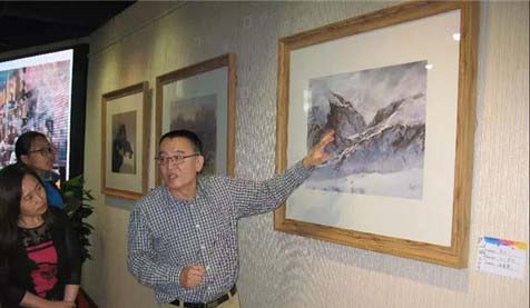 5月12日,新疆美协水彩艺委会主任许英武正在向市民介绍优秀参展作品。中国书画导航网(通讯员/赵丽报道)近日消息,由新疆美术家协会、巴音郭楞蒙古自治州文化体育广播影视局主办,新疆美术家协会水彩·粉画艺委会、巴州美术馆、巴州文化艺术创作中心承办的2018水彩巴州——新疆水彩画作品展开幕式在巴...[详细内容]