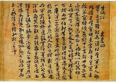 2003年7月10日,故宫博物院以2200万元人民币优先从嘉德拍卖公司购得清宫散佚的章草书法《出师颂》,同年8月18日,嘉德向故宫交接,是作回归故宫。 《出师颂》卷,纸本,本幅纵21.2厘米,横29.1厘米,章草书,无款。引首有篆书“晋墨”二字和花押“伍”以及乾隆御题一段,后隔水亦为乾隆御题,后纸接米...[详细内容]