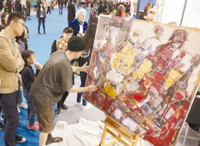 图为艺术家在艺博会上一边作画一边为观众讲解。 佳 硕摄(人民视觉) 本报上海11月5日电(记者曹玲娟)主题为“艺术,为生活添彩”的2017上海艺术博览会今天在上海谢幕。据上海艺博会组委会介绍,尽管今年艺术市场低迷,本届盛会仍然有近1.5亿元的成交额,持平2016年创造的历史纪录。上海艺博会主办方...[详细内容]