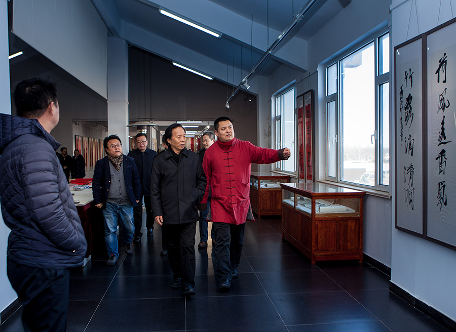 1月28日下午,由中共东营市委宣传部、东营市文化广电新闻出版局、东营市文学艺术界联合会主办,东营市美术家协会、东营市书法家协会、山东万里置业有限公司、琼玉生辉文化传播有限公司、东营市光辉画馆承办,东营区旅游局、东营区文联、黄氏酒坊、久雅居茶书院协办的“回家过年·红梅迎春”——当代中国画名家楹联作品展在东营文化艺术城光辉画馆开幕。