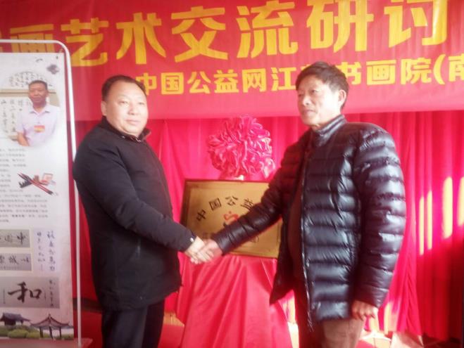 中国公益书画院艺术交流研讨会在南通著名景点石渚渔湾举办,江苏书画家郑雪春、郑建平、北京书画家李华芳、周森昌等诸多公益书画名流莅临活动现场,同时出席活动的还有中国公益网总编汪国保、中国公益网江西站负责人毛小宝、中国公益网江苏站负责人陈忠、王燕等。  中国公益网总编汪国保向郑雪春授牌,中国公益网江苏书画院正式成立,郑雪春出任院长。  据悉,中国公益网江苏书画院是集书画学术研究,展览展示,文化艺术交流,社会公益服务一体的经营机构,由江苏知名画家、书法家、美术评论家及艺术产业机构等有志于繁荣发展祖国艺术事业的社会各界人士组成的艺术团体。其立足江苏,面向全国,在国家法律、政策和道德风尚规定的范围内,团结江苏社会各界公益书画艺术工作者,为弘扬中华民族优秀传统艺术及公益文化,促进江苏书画艺术交流与公益书画事业、产业的大力发展。  笔书盛世文明,墨绘和谐新片。中国的书法绘画集中反映了我们的文化理念和审美价值。纳古今于方寸,纵情怀于一纸,中国公益网江苏书画院在南通的挂牌成立,强强联手使江苏广大书画艺术家、爱好者又增添了一个好的交流展示平台。也是江苏书画界的一件盛世,它必将对繁荣江苏书画创作、促进书画理论研究、弘扬中华民族优秀传统文化,发挥重要的作用。  郑雪春简介: 郑雪春,1954年出生,江苏南通人,号喜尔晓春,1984年国际书画通九级。全国榜样人物、中国公益网书画院院士、江苏省公益书画院院长、中国优秀书画家,苏州吴画院特级画师,中国国家美术家协会理事,中国国家书画协会理事,先后获得多个全国年度书画赛金奖,美国、加拿大展览大奖。2010年9月被北京中国中外名人文化研究会,中国现代史学会,联合授予:“中华爱国先进模范人物”荣誉称号,个人荣誉及成就资料,编入了《百世经典》。同年由国家邮政部印发了个人专题流通邮票。