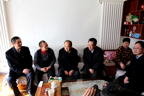 看望烈属王兆美 慰问组成员看望烈属王兆美,其老伴在1947年淮海战役中牺牲。