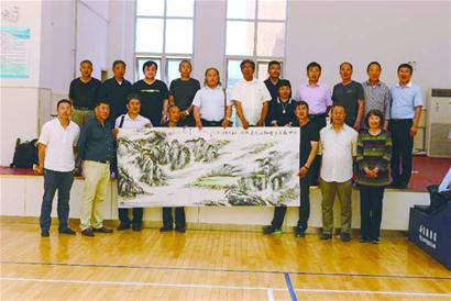 本报讯 六一国际儿童节,红岛经济区书协、美协偕20余名协会骨干会员来到了高新区汇海小学,与学校书法社团举行了一场“书画新时代,爱心盈汇海”大型书画艺术互动活动,让孩子们过了一个不一样的节日。 20余名学生参加了本次活动,一个上午时间共创作书画作品200余幅。王忠谋主创、19位书画家共同完成的八尺整张巨幅山水画 “汇四海园丁育红岛精英”赠送给学校作为收藏。红岛书协、美协自成立以来,紧紧围绕着区文联提出开展的“爱上这座城”惠民服务,以弘扬中华传统美德,正本清源,大力加强社会主义精神文明建设。发扬和传承中华传统文化为主题的送文化活动。