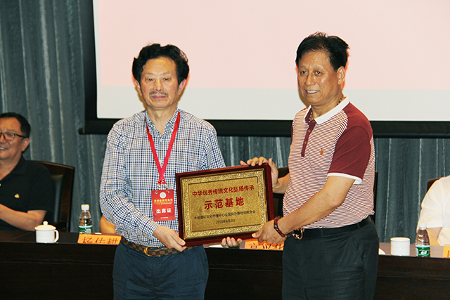 随后,中国国际文化传播中心全国民办博物馆联合会授予深圳市收藏协会“中华优秀传统文化弘扬传承示范基地”牌匾。