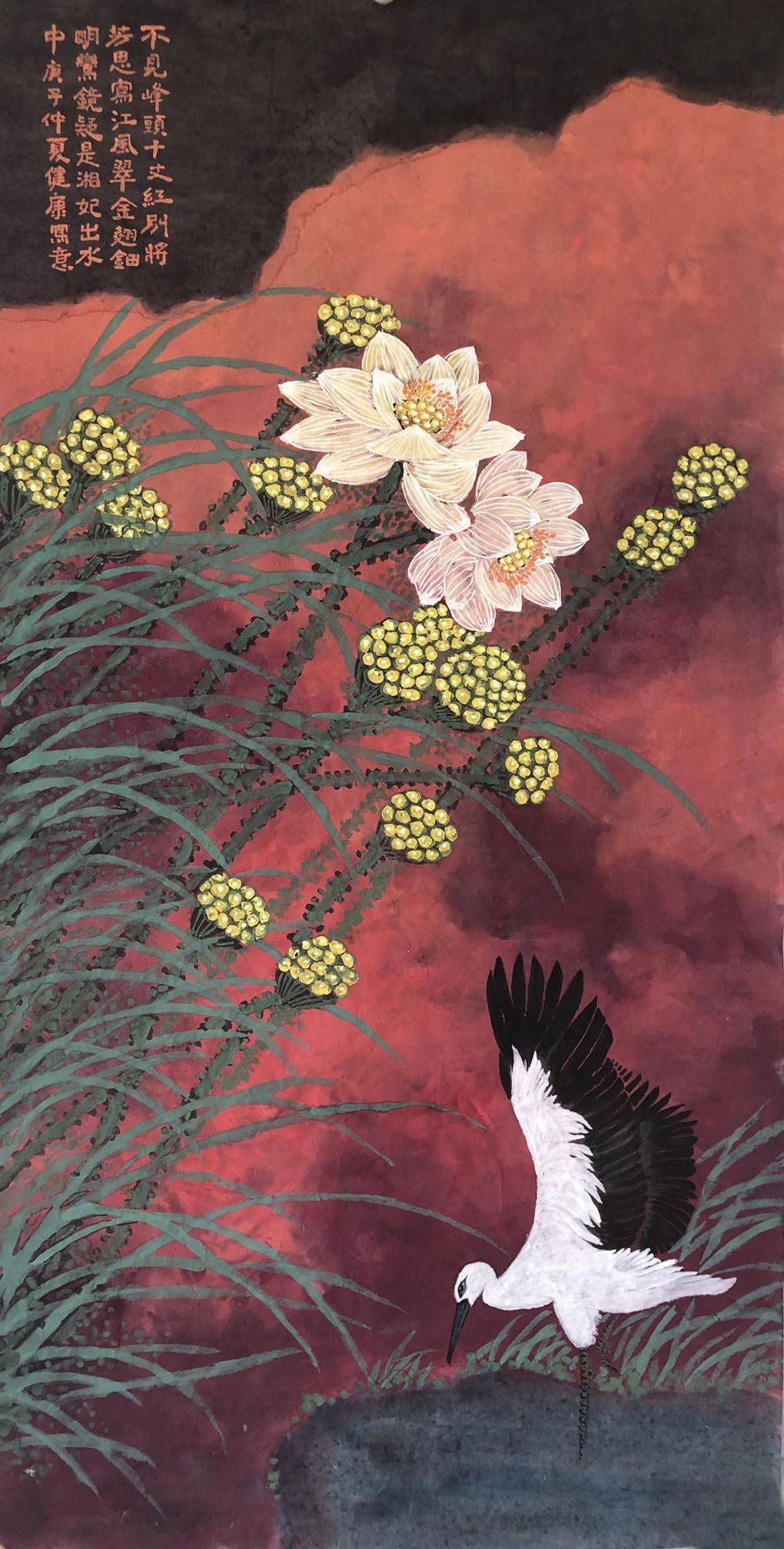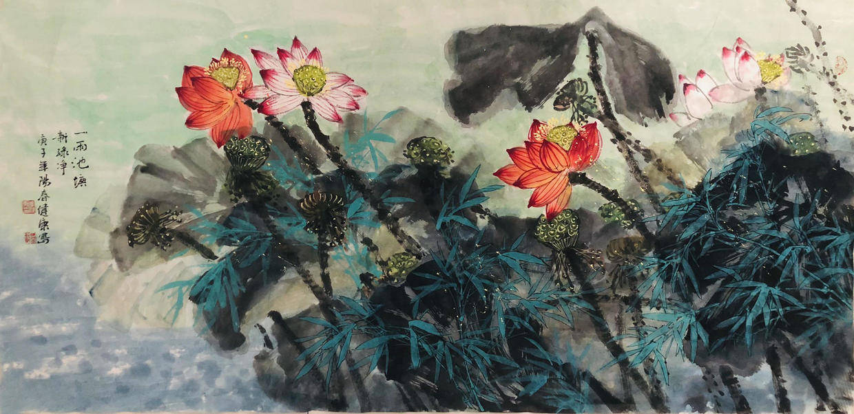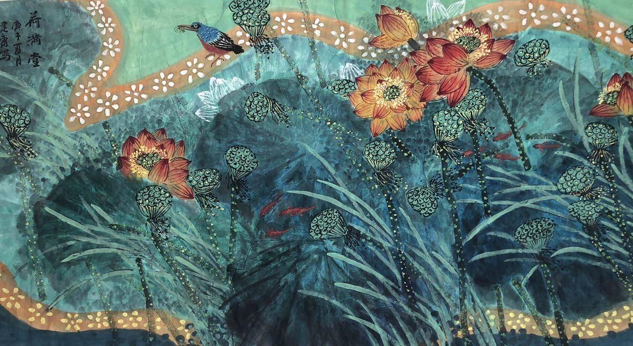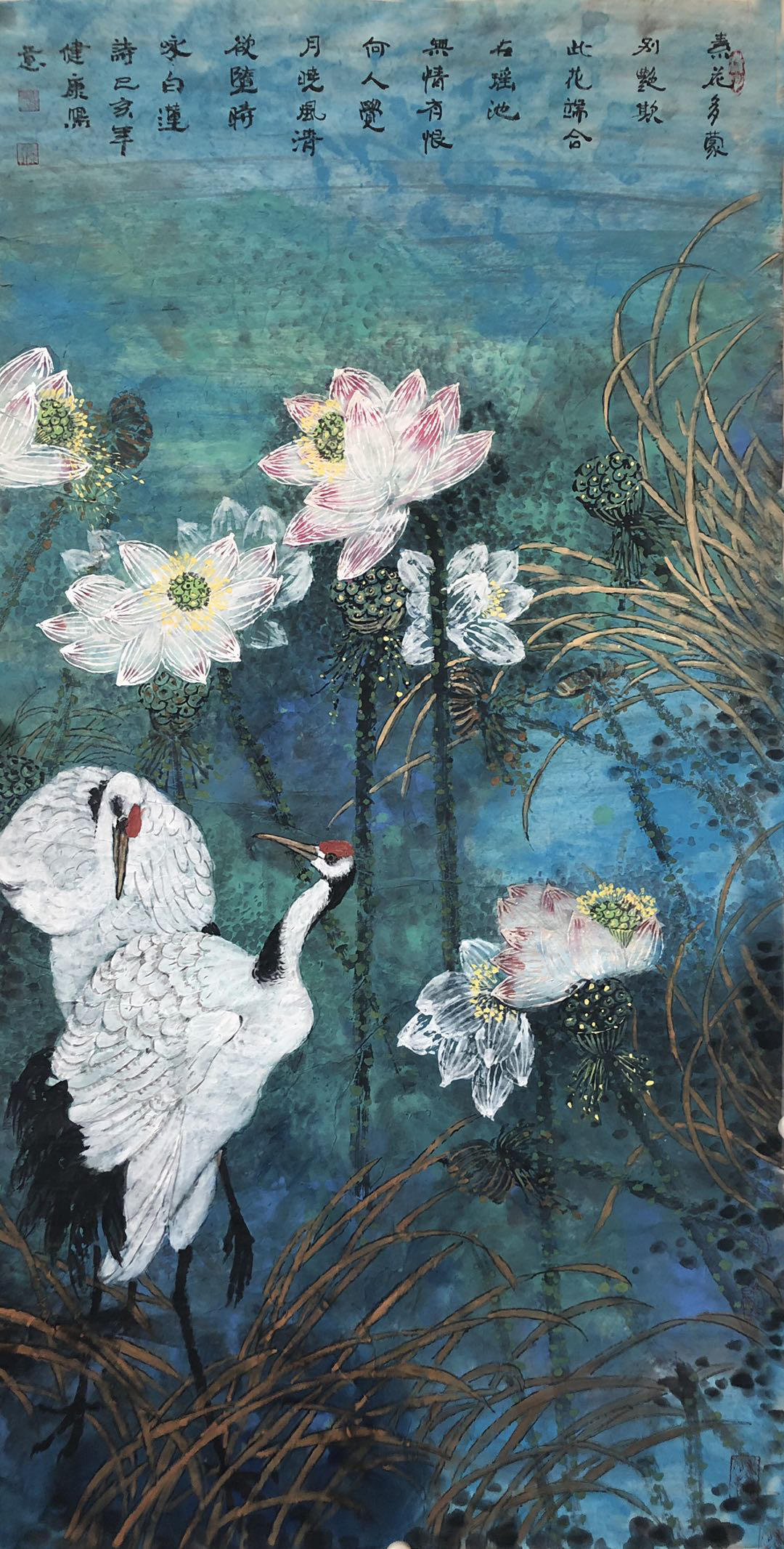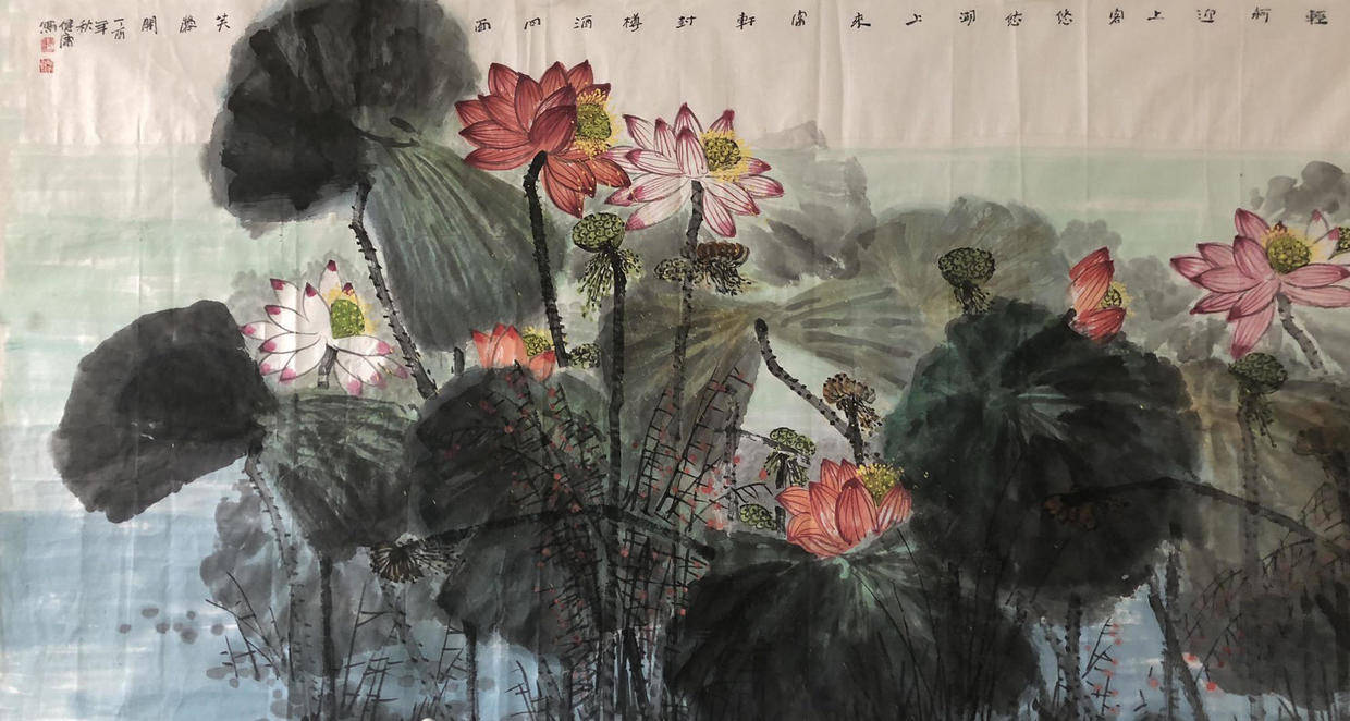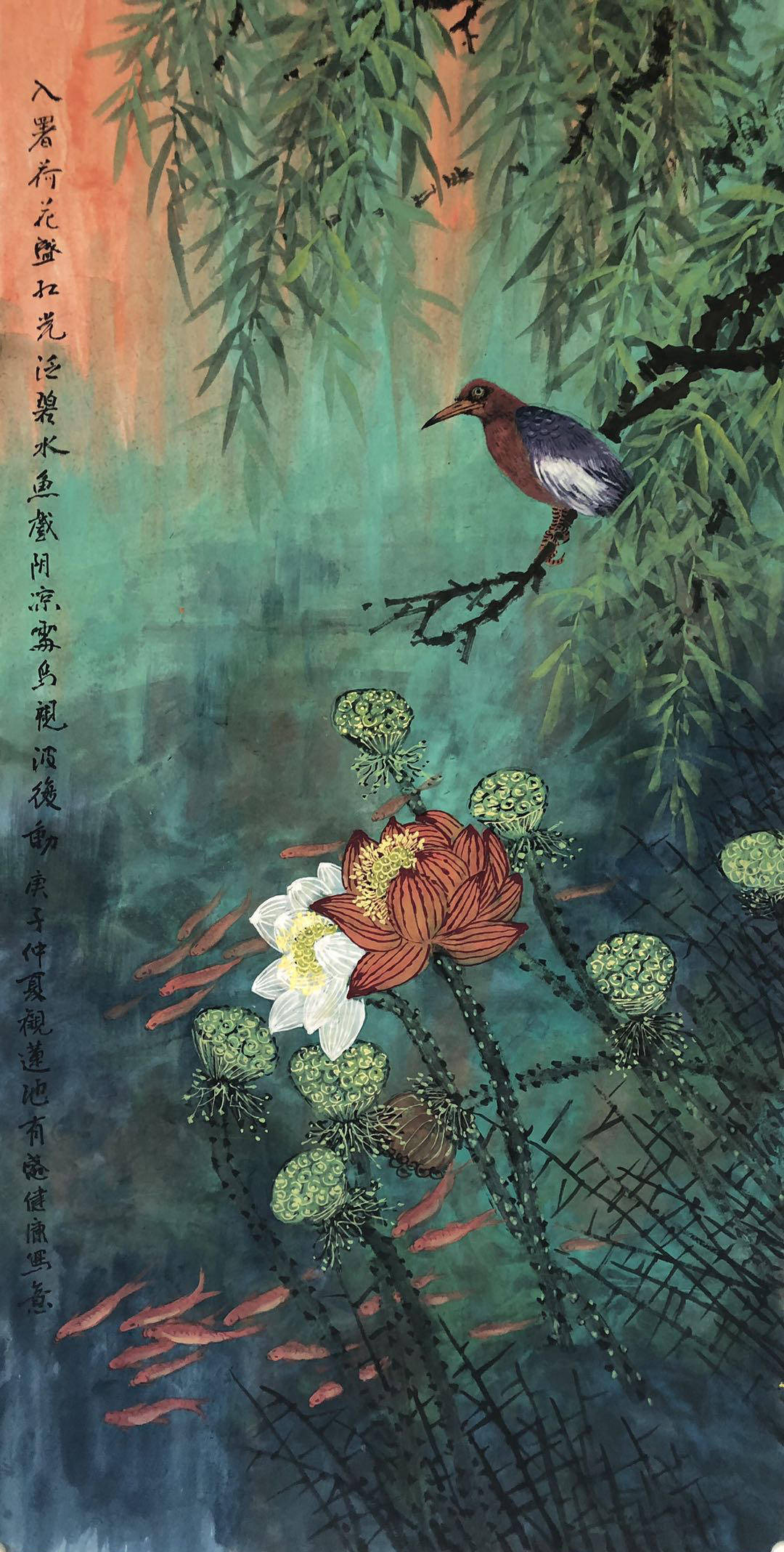 李健康,现为中国美术家协会会员、中国敤首书画艺术研究院院长、健康美术馆馆长、中国工艺美术协会会员、中国人民大学艺术学院高研班导师、中国沫若书画院艺委会主席、中国涉外经济学院客座教授、中华艺术家杂志社执行社长,国家一级美术师、山西运城盐湖书协、美协名誉主席。 2014年《绿色家园·百花写照》李健康书画全国巡回展(首站内蒙古呼市、第二站江苏无锡、第三站吉林长春、第四站福建东山、第五站江苏宜兴)取得圆满成功! 2015年作品《徽乡记忆》获“首届八大山人全国山水画作品展”优秀奖 中国美协主办 2015年作品《四君子》入选“高品洁性兰惠人生”中国美协主办 2015年作品《幽居在空谷》入选“纪念潘洁兹诞辰一百年全国中国画展”中国美协主办 2018年作品《秋风弄好音》入选“入蜀方知画意浓”全国美术作品展(中国画)中国美协主办 2018年作品《秋水长天》获“诗乡画城·潇洒桐庐”全国中国画作品展入会资格中国美协主办 2019年作品《徽乡记忆之月是故乡明》入选“山西省第十七届美术作品展”。 2019年作品《春暖鸭先知》参加山西省第五届工笔画展。 2019年作品《清风鸣翠》获“客都梅州.风眠故里”全国中国画(山水花鸟)作品展入会资格。{中国美协主办} 出版《李健康花鸟画作品集》、《中国名人堂 当代百名书画家系列—花鸟画家李健康》、《李健康扇面小品书法集》、《中国当代书画大家个案研究—李健康花鸟画作品集》等。 编者语—— 每到荷花盛开的季节,娇艳美丽的荷花,妩媚动人姿态,饱含韵味的她被无数文人墨客所赞颂,历代画家为之闲情寄写,执著不倦地为她写真传神。美好品格,更被人们当做是自身修养的品鉴。追捧荷花高贵品质的人络绎不绝,而李健康对荷花的追捧仍在继续, 他画的荷花独树一帜,神韵盎然。李健康画的荷花显得分外高洁清逸,不仅超凡脱俗、临风亭立的仙骨神韵给他以绝妙的美感享受,那出淤泥而不染、濯清涟而不妖的气节品性 。 作品赏析: 《金红开似镜》68x68cm