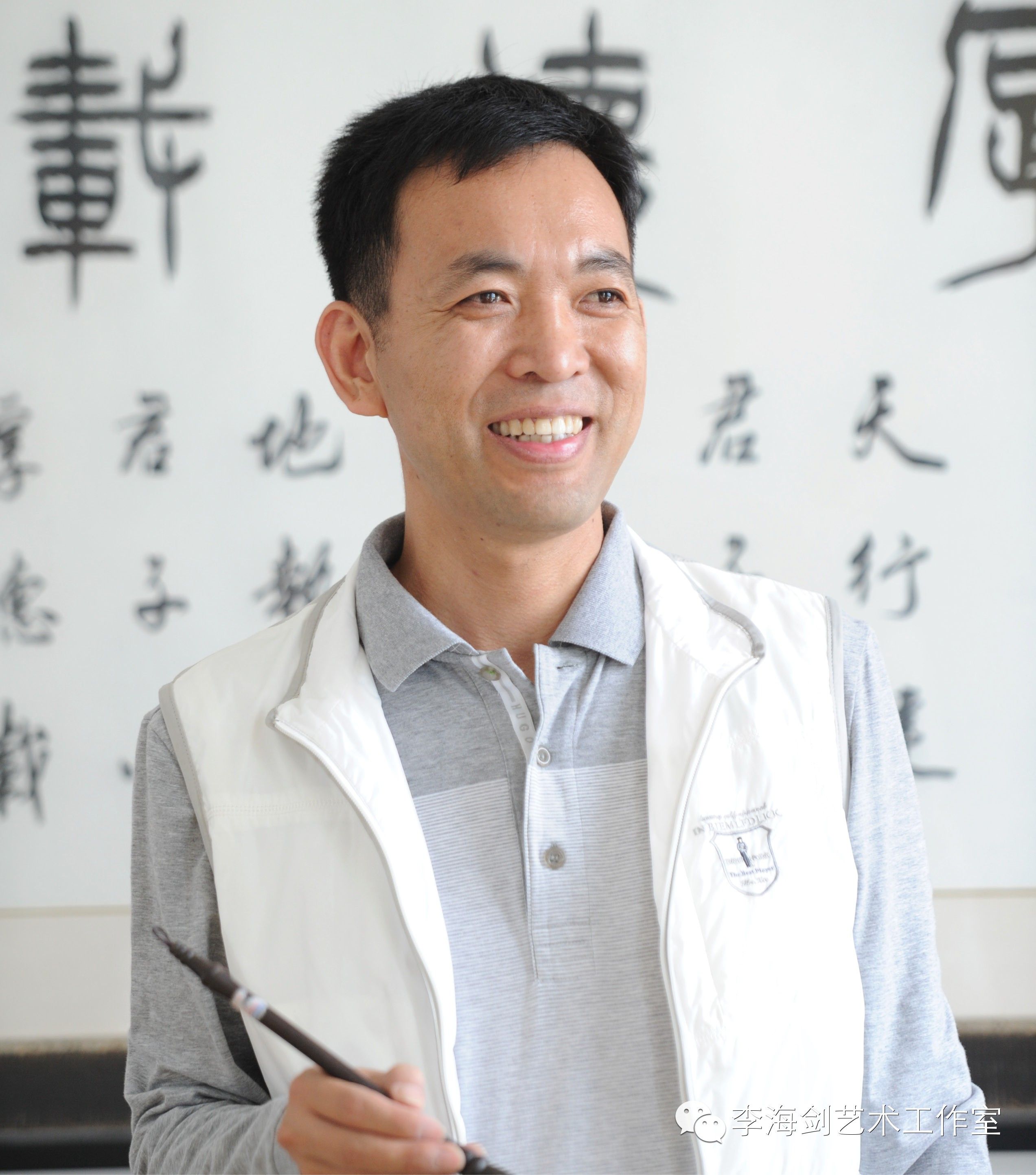 李海剑先生是书坛后起之秀,有书坛“扇面黑马王子”之美称,同时兼任《美术家》杂志和《文艺中国》杂志总编,其作品师古不泥、隽逸洒脱、神韵超然、清新出尘,一呈典雅心性之美,透视出一种古雅之韵、文人之气、学者之风。作品多被国内外政要、巨贾收藏。其书写的“如是”系列茶和“如是琴”被高端人士追捧,从而树立起书法艺术为产业和市场经济服务的一个新的里程碑。