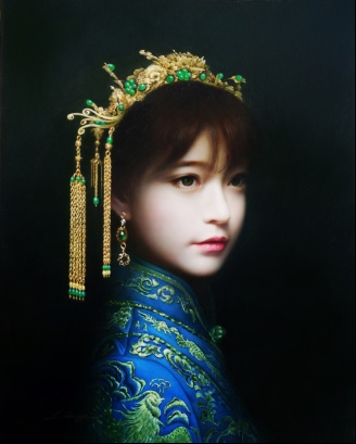 刘晓朋的代表作之一《盛装女孩》便充分展现了他对写实绘画的独到理解。画面中的女孩身着华丽的服饰,优雅地端坐在椅子上。刘晓朋通过精湛的绘画技巧,将女孩的气质和神韵表现得淋漓尽致。观者仿佛能够透过画面,感受到女孩的自信和从容,体验到一种唯美的审美愉悦。另一幅作品《东方丽人》则展示了刘晓朋对东方女性美的深刻理解。画面中的女性形象婉约而高雅,散发着东方女性的独特魅力。刘晓朋运用丰富的色彩和细腻的笔触,将东方女性的韵味和气质展现得淋漓尽致,令人陶醉。