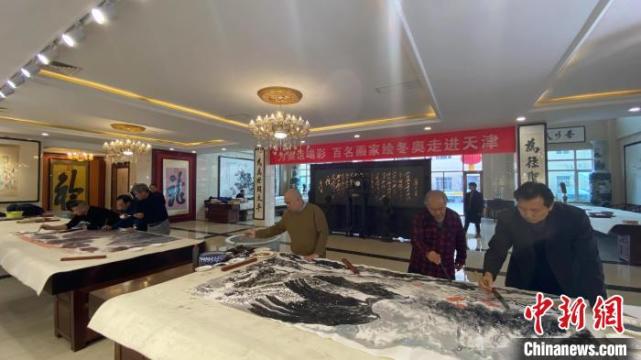 当地艺术家现场创作 张敏霞 供图中新网天津1月4日电 北京冬奥会倒计时一个月之际,由“为奥运喝彩”组委会主办的“百名画家绘冬奥”活动4日走进天津,中国美协副主席、天津美协主席王书平等当地艺术家现场合作创作了奥林匹克题材的中国画作。在活动现场,艺术家们分两组分别创作了两幅山水画——《飞...[详细内容]