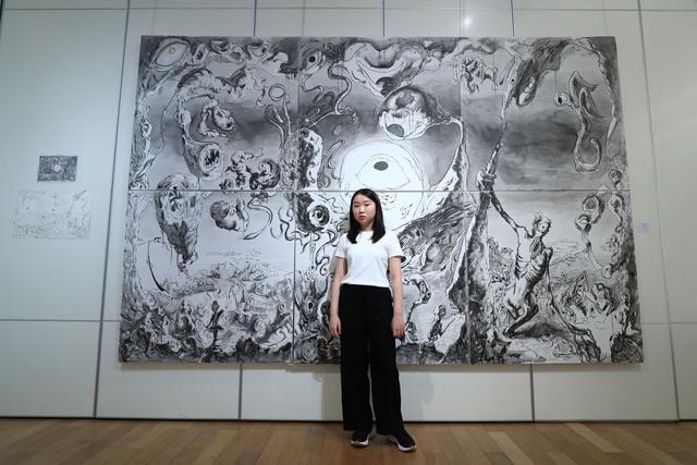 把米开朗基罗的《创世纪》拆解再重组,创造出一个反乌托邦世界;化用理查德·林达纳的几何抽象画,表达对容貌焦虑和大众审美的批判……8月14日在深圳巢美术馆开幕的“白夜蜉蝣——梅千千个展”,打破了人们对绘画的惯常理解。梅千千在展览现场正在美国读书的15岁深圳女孩梅千千,用古典主义画风来呈现...[详细内容]