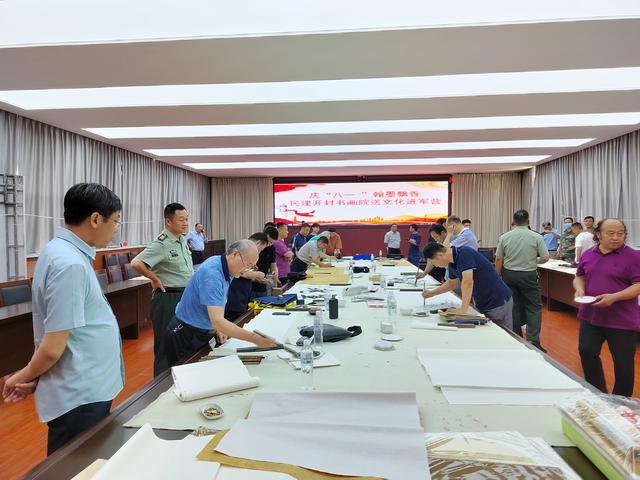 近日是,在人民解放军建军94周年“八一”建军节来临之际,为进一步构建和谐军民关系,丰富军营官兵文化生活,由开封军分区、民建开封市委组织的迎‘八一’翰墨飘香”民建开封书画院送文化进军营活动在开封军分区举行。开封市委常委、开封军分区政委刘银生,开封军分区司令员张嘉雷,副司令员崔瑜,民建...[详细内容]