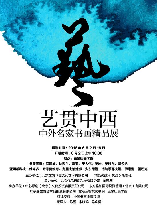 展览海报 中国书画导航网消息(通讯员陆地)由北京艺海华夏文化艺术有限公司和《优品》杂志联合主办、北京三智文化书院协办的“艺贯中西——中外名家书画作品展”将于6月2日-8日在北京玉泉山美术馆隆重举行,届时将展出知名画家赵建成、林容生、李亚、于大伟等人及俄罗斯当代油画家的最新作品。 策展人...[详细内容]