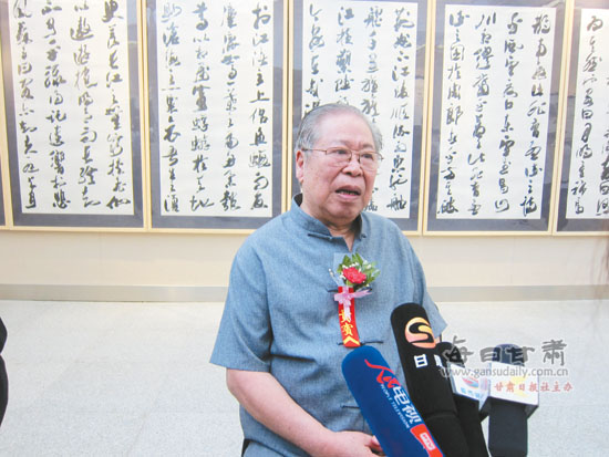吴三大接受采访。本报记者赵汇摄 每日甘肃网-兰州晨报讯(记者赵汇)8月17日,由甘肃省委宣传部、甘肃省文联主办,陕西省甘肃商会、甘肃省画院承办的“丝路精神,秦陇文脉”——吴三大、罗国士书画艺术交流展,在甘肃美术馆隆重开幕。 陕西是古丝绸之路的起点,历史悠久、文化底蕴深厚。伴随“打...[详细内容]