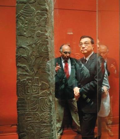 李克强参观秘鲁文物展 发现中秘古文化图形相似(图)...