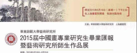 展览海报 华东师范大学艺术研究所2015届中国画专业研究生毕业汇报暨艺术研究所师生作品展,将于2015年5月18日在上海书画开幕。 本次展览主要展出华东师范大学艺术研究所2015届毕业研究生及师生作品展览,本次展览将持续到5月25日截止。 时间:5月18日-5月25日(18日下午2:30)开幕 地点:上...[详细内容]