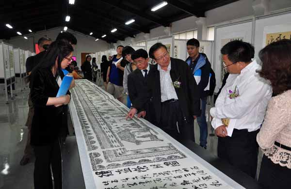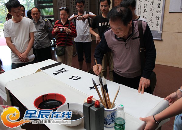 图为书法家在展厅现场挥毫。 近日,湖南商学院“意与古会”主题书法展在该校实验楼大厅开幕。本次展览共展出书法作品123幅,其中汇集了该校师生新近创作的作品,同时也有部分省内书法家的作品。展出作品兼具行草隶篆诸体,可谓风格多样,意态万千。本次展览将持续至5月12日。来自省书协、省青年书协的...[详细内容]