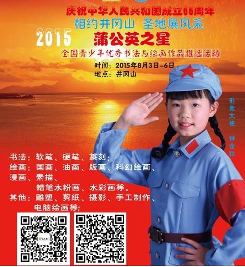 人民美术网>要闻>第二届蒲公英之星全国青少年优秀书法与绘画作品推选活动将于8月走进井冈山 (图)第二届蒲公英之星全国青少年优秀书法与绘画作品推选活动将于8月走进井冈山 (图)2015-03-25 16:13文章来源:人民美术网为庆祝中华人民共和国成立66周年,为了认真贯彻落实习近平主席“全国广大青少年...[详细内容]