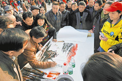 书画家们挥毫泼墨,为基层群众描绘祖国大好河山。记者吴传明摄12月12日,由四川省委宣传部、省文化厅、省新闻出版广电局等主办的“脚下土地·美好梦想”四川省文艺界“深入生活·扎根人民”主题实践活动启动仪式在德阳市中江县举行。这次活动中,我省宣传文艺系统各单位将组织和动员文艺工作者走进基层...[详细内容]