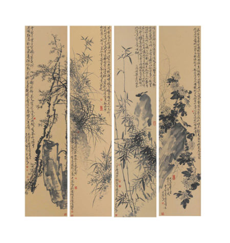 展览作品之《梅兰竹菊四条屏》 中国画学从思想方法上从来不是对客观世界的再现与描摹,而是以心观物,以意取象。心物合一,才是中国画学表现的象。 而写意花鸟画在当今已经表现出势不可挡的的式微,这是因为当代的中国画家被西学教育所影响,已逐渐丧失了以心接物的观照方法和能力,代之的是以写...[详细内容]