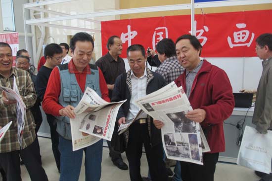 画家看中国书画报 【人民美术网讯 记者蔡一碟报道】10月11日,第四届中国国际民间艺博会暨第四届中华(天津)民间艺术精品博览会在天津梅江会展中心拉开帷幕。“中国书画报社四条屏30家提名展”在博览会中亮相。《中国书画报》是全国惟一集书法、国画、篆刻艺术于一体的优质专业报纸,读者遍及海内外,...[详细内容]