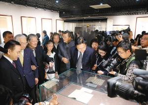 西出义心先生等观展 记者 王幼健 摄于右任先生1962年日记原件 记者 王幼健 摄 为纪念于右任诞辰135周年、逝世50周年,由日本收藏家西出义心先生珍藏的“于右任《望大陆》珍贵日记及书法精品回故乡特展”,10月4日在西安交大博物馆开幕,此系《望大陆》日记首次公开面世,也是首次回到于右任的故乡展...[详细内容]