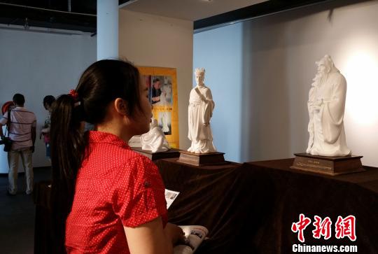 21日,“德化大师限量版”陶瓷雕塑艺术展在福建泉州领SHOW天地文泽艺术馆揭幕,展示了中国陶瓷雕塑艺术的独特魅力。图为一名参观者正在欣赏雕塑家的瓷雕作品。 郭斌 摄 中新网泉州7月21日电(郭斌 吴小丽 陈志明)21日,“德化大师限量版”陶瓷雕塑艺术展在福建泉州领SHOW天地文泽艺术馆揭幕,展...[详细内容]