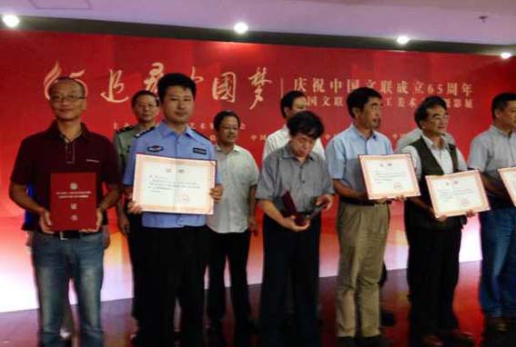 全国文联主席孙家正、中国文联党组书记赵实同志与其他领导为获得“特别优秀奖”的10名代表颁奖,全国公安美协副主席李冬代表全国公安文联参展并唯一获奖[详细内容]