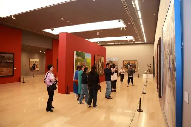 图为展览现场。(中国美术家协会供图) 由文化和旅游部、中国文联、中国美协共同主办的“庆祝中华人民共和国成立75周年——第十四届全国美术作品展览进京作品展”27日在中国美术馆开幕。第十四届全国美术作品展览分为两个阶段,第一阶段在13个分展区展出4814件作品,第二阶段在中国美术馆和中国国家...[详细内容]