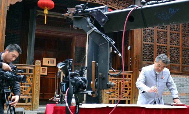 甘泉在电视片开机仪式现场作画。中国书画导航网 甘泉消息(通讯员陈明玉),甘泉书画禅境艺术研讨会《明心悟禅》暨电视片开机仪式在上海浦东陆家嘴吴昌硕纪念馆举行。众多艺术界、评论界、收藏界、教育界人士齐聚一堂,研讨甘泉的创作风格和艺术理念。甘泉的书法作品字中藏画,字里寓画,如顿悟之机,意...[详细内容]