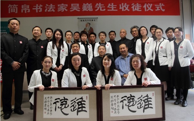 中国书画导航网太原3月22日消息(记者 赵建民),在北京清华大学举行了简帛书法家吴巍先生第二次收徒仪式。吴巍先生研究简帛书法三十余年,不分寒暑,无论春秋,埋首笔墨之间,踏踏实实地沉浸在简帛书法的探究钻研...[详细内容]