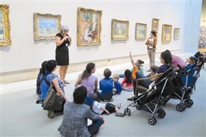 深圳南园小学安素惠老师(左一)在关山月美术馆中给学生上美术课。 逛过国外美术馆、博物馆的人,都有一个印象:无论你什么时候去,都有可能碰到一群学生在老师的带领下欣赏作品,甚至现场临摹,他们的身影为严肃的艺术殿堂增加了活跃的音符。 反观国内,美术馆的社会教育功能尚处于起步阶段,而...[详细内容]