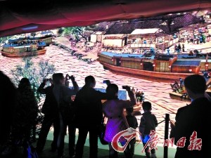 清晨薄雾时分,一条河水潺潺流过,船只摇曳行进,河上纤夫吆喝。天空微明,街上人流如织,叫卖的、拉货的、喝酒闲聊的,百象纷呈,汴河两岸亦开始热闹起来……这不是电影,这是昨日起在广州首展的“大宋·东京梦华”《清明上河图》巨幅3D长卷呈现在广州市民面前的北宋真实面貌。(记者李立志摄影报...[详细内容]