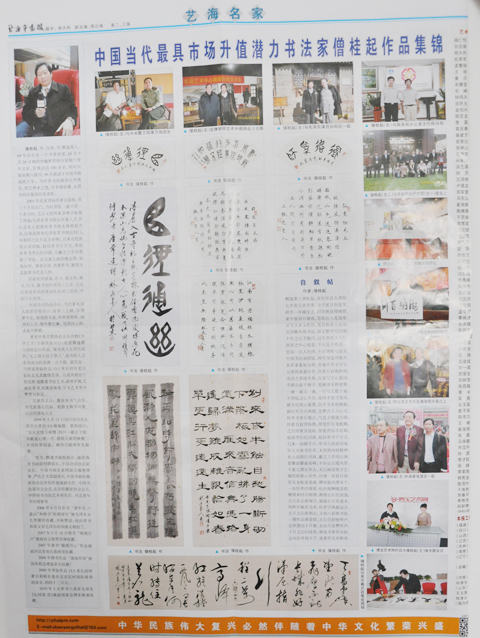 中国书画导航网消息,2014年3月,由《书画市场报》、艺海拍卖公司、北京顺义文联、等多家政府机构和相关媒体所举办的书法评选大赛活动中,我国著名的书法僧桂起先生被评为“2014年中国当代最具市场升值潜力的书法家”并刊登和出版在《书画市场报》的第302期。...[详细内容]