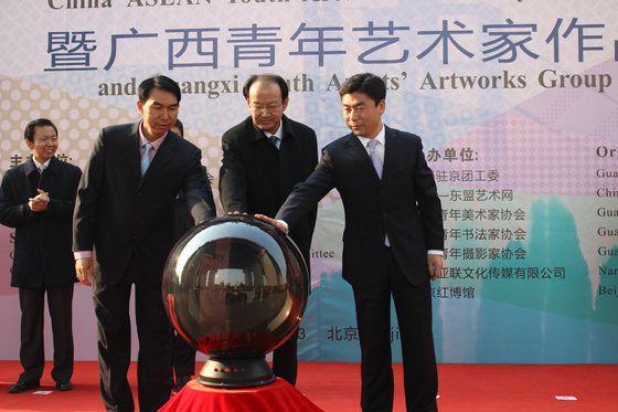 东盟青年艺术品创作大赛开幕式人民美术网讯 2014年3月8日"中国-东盟(十国)青年艺术品创作大赛成果暨广西青年艺术家作品联展"在北京红博馆隆重举行开幕仪式!全国青联副主席(团中央书记处书记)周长奎,广西青联名誉主席(广西团区委书记)白松涛,广西驻京办副主任许广英、全国青联常委(著名书法...[详细内容]