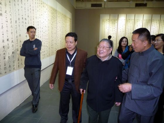李铎(中)在王春新(右)崔勇波(左)陪同下观看展览 一超摄人民美术网讯(特约记者彭一超)2013年10月13日,由中国书法家协会、中国艺术研究院中国书法院、中国书画杂志社、解放军美术书法研究院、武警美术书法研究院和陕西省书法家协会共同主办的“大道至简——王春新书法创作汇报展”第二站北京展...[详细内容]