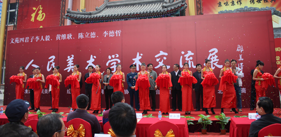 开幕式剪彩 由人民美术网、青艺网、北京红博馆主办,贵州茅台爽酒协办,北京得一斋承办的第四届人民美术展于2013年10月12日在北京人民美术馆隆重开幕。 中共中央委员、民进副主席朱永新、中共中央党校《学习时报》社长肖勤福、九三学社秘书长徐国权、北京市政府原副市长刘海燕等领导以及企业届、收藏界...[详细内容]