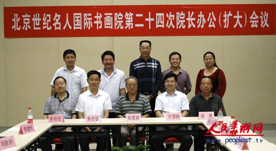 名人书画院第24次院长办公(扩大)会议合影。. 人民美术网讯 2013年9月7日,北京世纪名人国际书画院在首都体育馆一层的名人书画馆召开第二十四次院长办公(扩大)会议,全国政协原副秘书长、名人书画院院长张道诚,中国书协理事、名人书画院副院长朱守道,全国青联委员、中国书协青少年委员会委员、名人书...[详细内容]